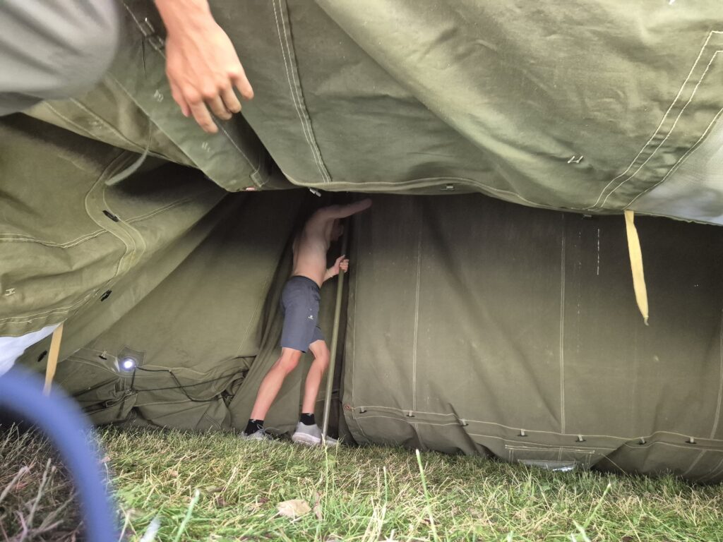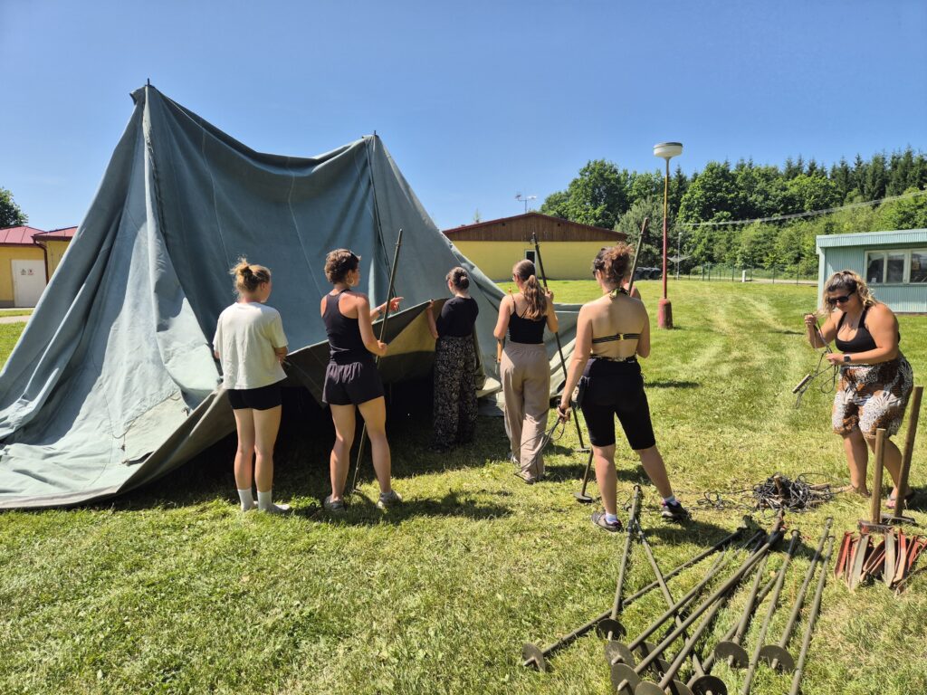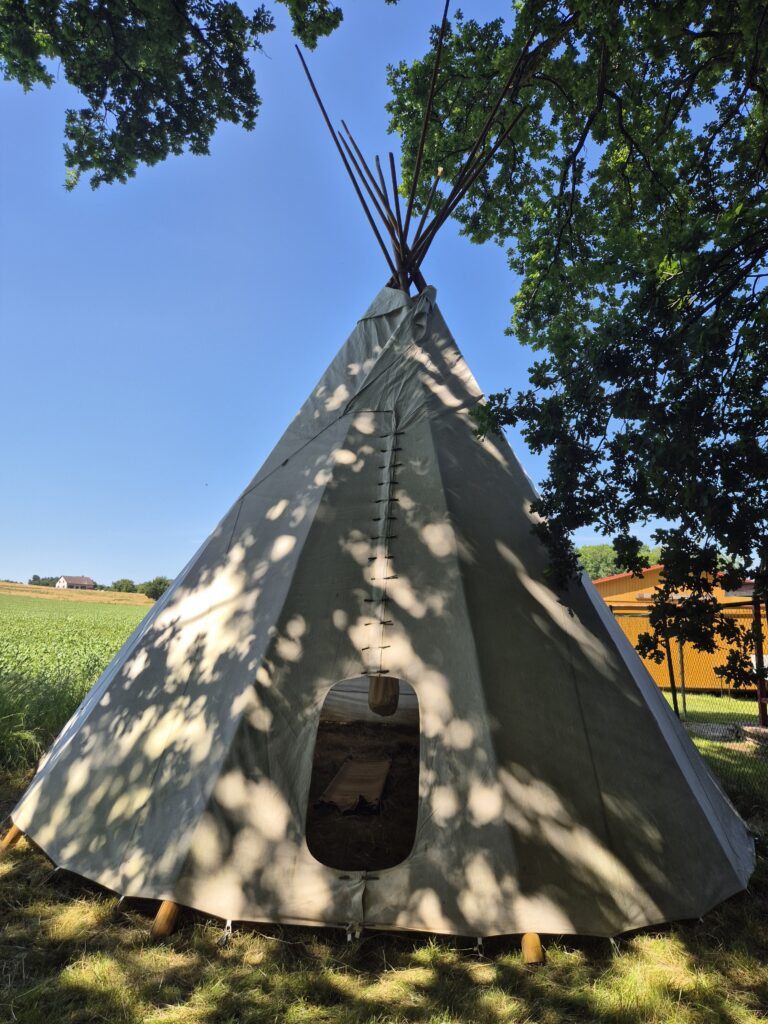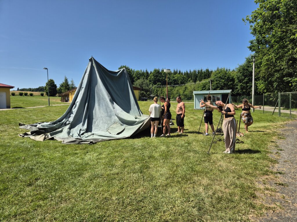 Postavili jsme teepee. příjezdový stan, kontrola výbavy na puťák a tak dále.